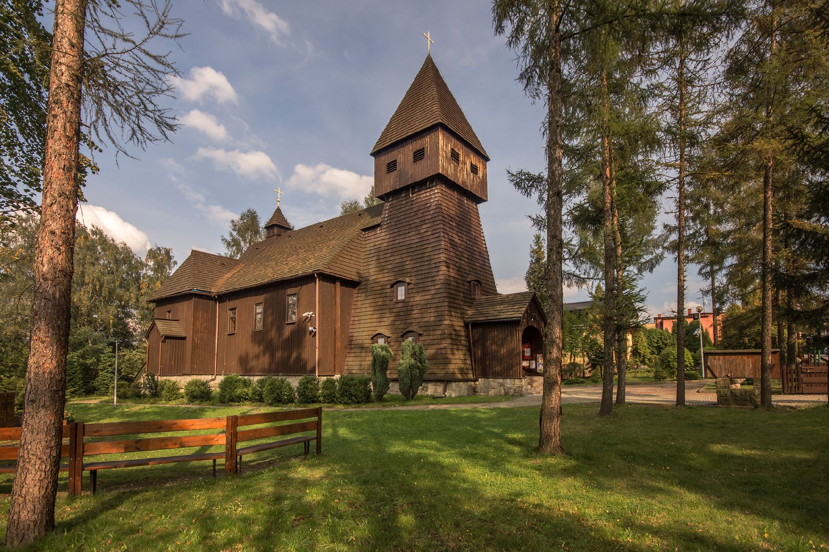 Drewniany kościół św. Barbary i św. Józefa w Jastrzębiu-Zdroju to jedno z tych miejsc, które łączą w sobie intymną skalę wiejskiej świątyni z ciężarem kilkusetletniej historii. Już przy pierwszym zetknięciu wyraźnie czuć, że nie jest to “zwykły kościół parafialny”, ale żywy zabytek Górnego Śląska, przeniesiony tutaj z dawnego Jedłownika i ocalony przed powolnym zniknięciem. Otoczony spokojną zabudową i zielenią, z charakterystyczną drewnianą wieżą i gontowym dachem, działa jak kapsuła czasu – po przekroczeniu progu bardzo łatwo zapomnieć, że za płotem wciąż tętni współczesne uzdrowiskowe miasto.